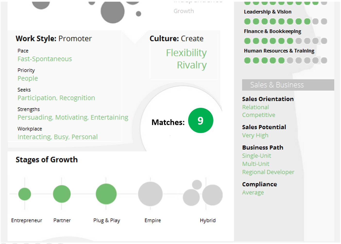 The SpotOn! Match will categorically compare your prospective franchisee to the high performing franchisees within franchise systems that Zoracle Profiles has completed a Top Performer Blueprint. We currently have 127 franchisors participating and adding more each month.