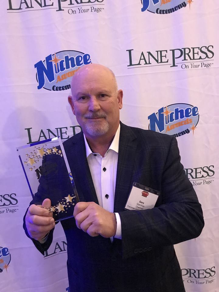 Gary Gardner and the team at Franchise Update Media win 2019 Best Niche Media Award at the Super Niche event in Nashville. Thank you Gary Gardner, Therese Thilgen and Diane Phibbs for your continued support of the franchise space.