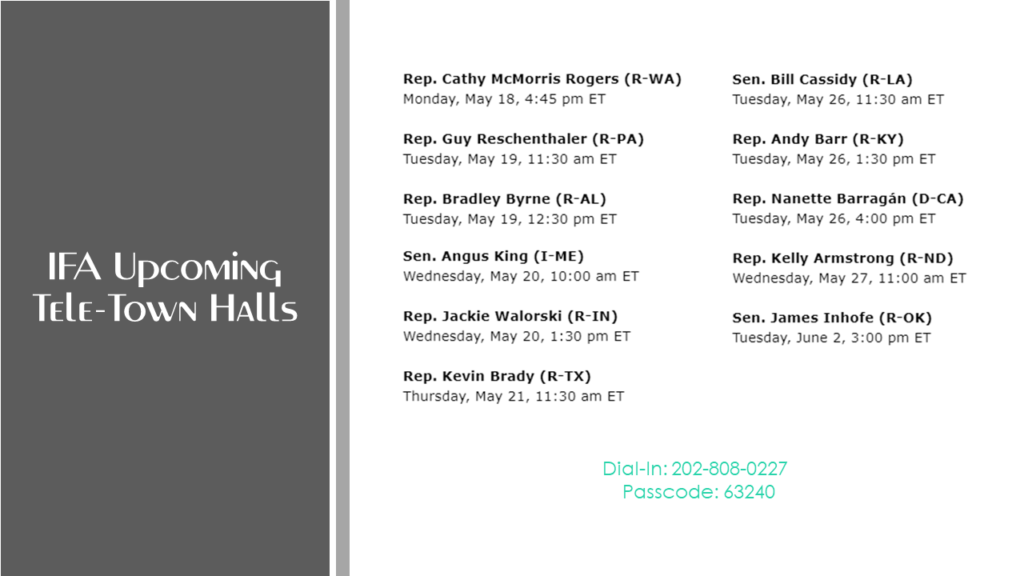 If you have any questions about these calls, please contact IFA’s Erica Farage at efarage@franchise.org.