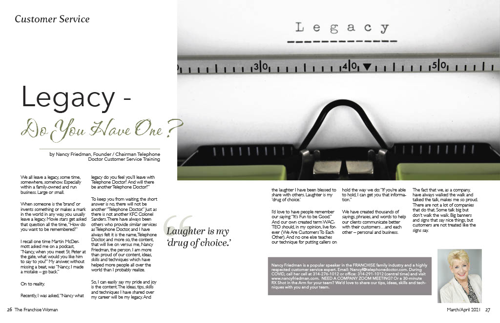We all leave a legacy, some time, somewhere, somehow. Especially within a family-owned and run business. Large or small.