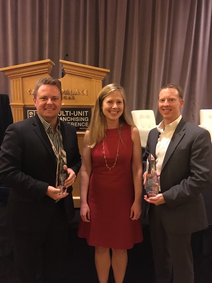 FranData’s Edith Wiseman presents Zaxby’s with Top$Score Award at this year’s Multi-unit Franchise Conference in Las Vegas. The award goes to franchisors who show commitment to simplifying the financing process and support their franchisees. Congratulations to Tray Doster and the team at Zaxby’s.