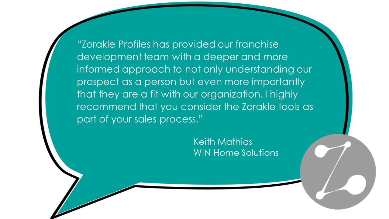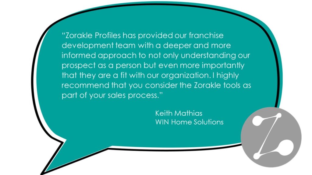 “Zorakle Profiles has provided our franchise development team with a deeper and more informed approach to not only understanding our prospect as a person but even more importantly that they are a fit with our organization. I highly recommend that you consider the Zorakle tools as part of your sales process.”